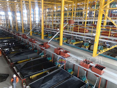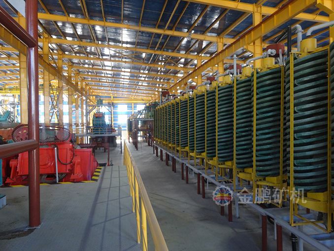 2、預(yù)選:將20~4mm礦石進(jìn)入重介質(zhì)旋流器預(yù)選,再經(jīng)一段棒磨后采用跳汰機(jī)預(yù)選,跳汰尾礦用2mm振篩篩除+2mm作為廢棄尾礦,-2mm進(jìn)入搖床選別。