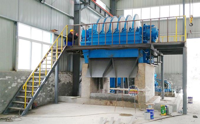 6、在精礦堆場附近安裝盤式過濾機(jī),精礦水分小于15%;利用選廠地形條件,將精礦自流到過濾機(jī),實(shí)現(xiàn)遠(yuǎn)程放礦自動(dòng)化控制,成功的解決了精礦粉倒運(yùn)成本高的問題。
