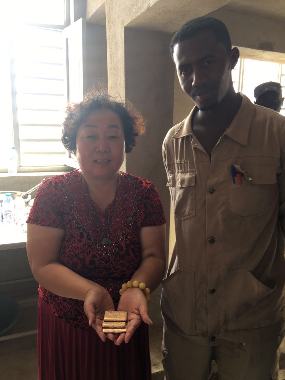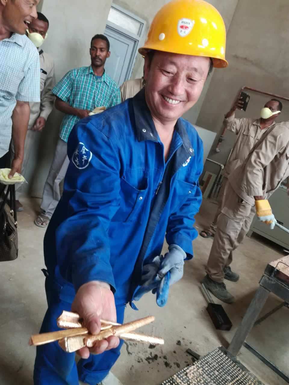 非洲200噸金礦于2017.7.17日第一批金條順利出爐,礦業(yè)部,安全部,礦主及金鵬和在場(chǎng)的所有的人都露出幸福笑臉,金鵬公司在茫茫沙漠中又建造一座金庫(kù)!