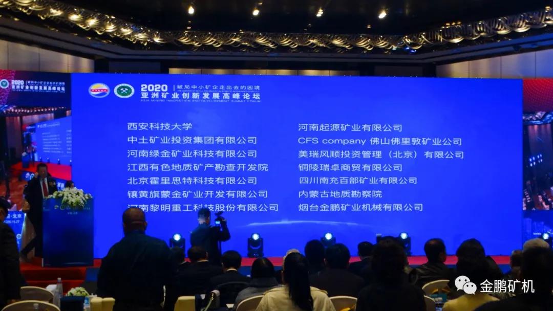 11月27日,由中國亞洲經濟發展協會、中國西部研究與發展促進會、中國亞洲經濟發展協會礦業專業委員會共同舉辦的2020亞洲礦業創新發展高峰論壇暨中國亞洲經濟發展協會礦業專業委員會揭牌儀式在北京舉行。金鵬礦機作為聯合主辦單位,全程參與支持此次盛會。本次論壇以“破局中小礦企走出去的困境”為主題,是首個針對亞洲礦業資源的創新發展論壇。