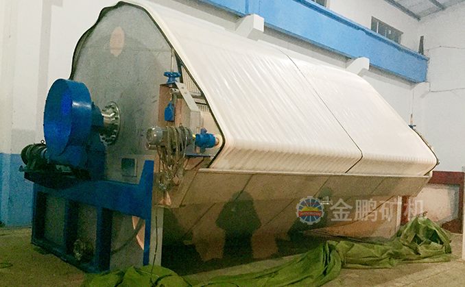 由于折帶式過濾機改變了卸料方式、加強了對濾布的清洗,便基本上克服了這些缺點。當濾餅經過真空區以后,濾布就由一套輥子引出筒外進行卸料和清洗,清洗好的濾布再回到筒體重新工作。
