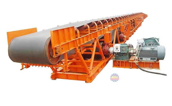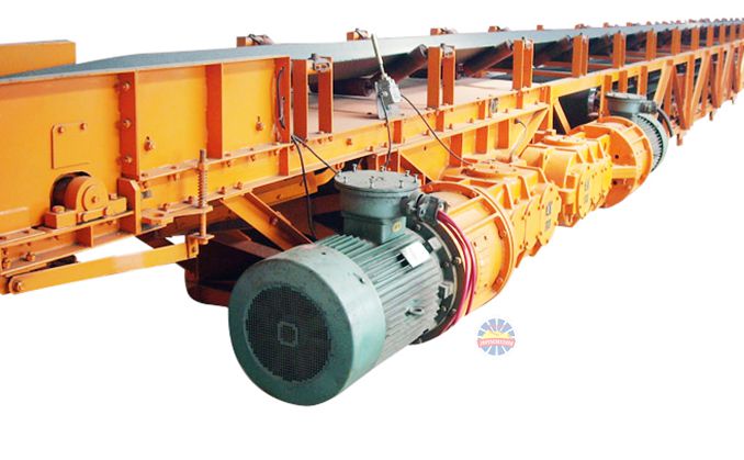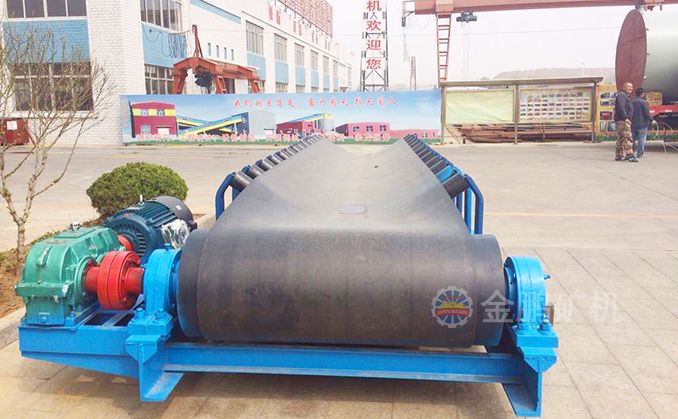 物料通過給礦漏斗給到皮帶給礦機帶面上,隨著交流調速電機的轉動,膠帶緩慢向前移動,帶面上的物料經首輪給入下道工序,實現連續給料。