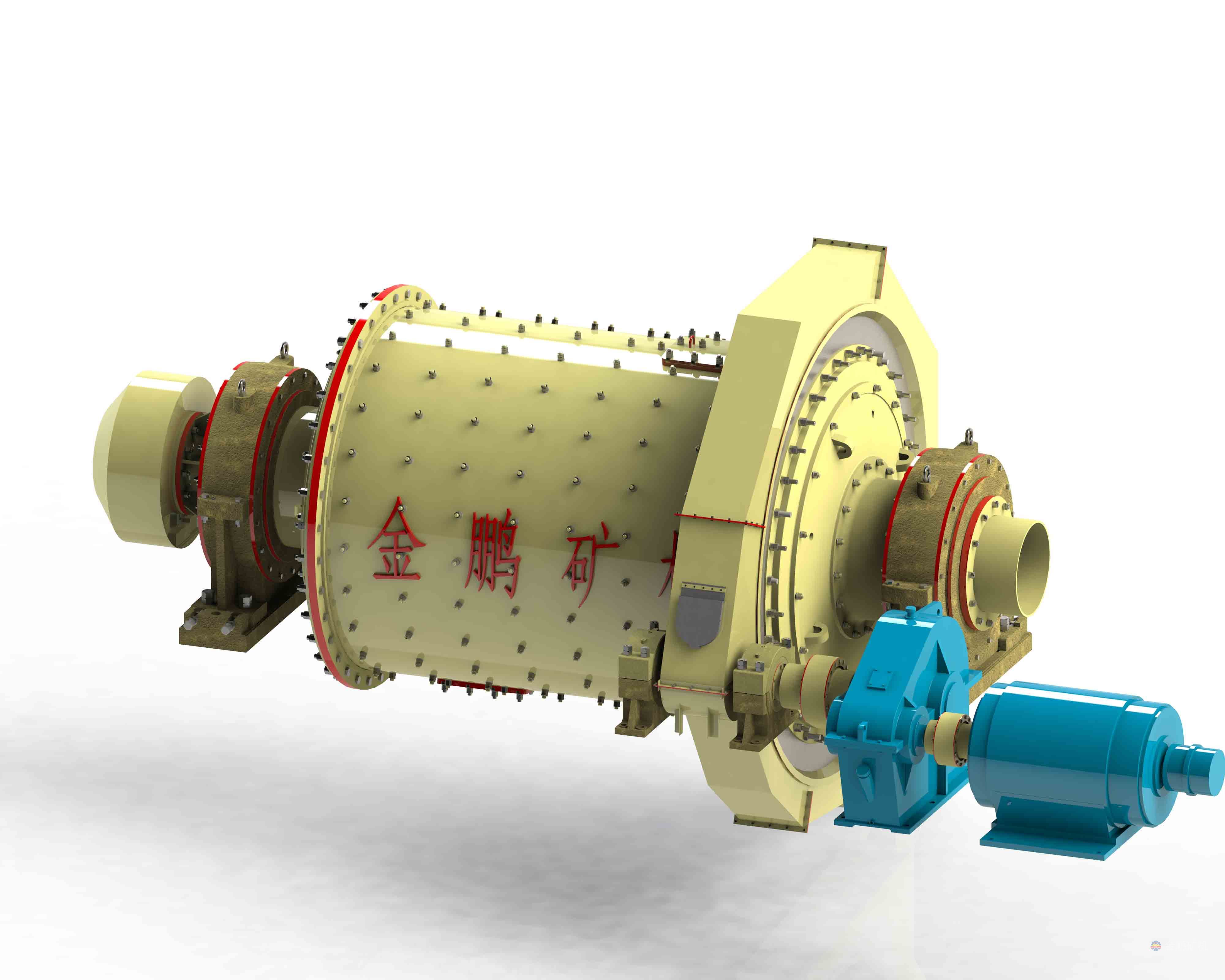 濕式溢流型球磨機主要部件是一個直徑較小而長度較大的筒體,由滾動軸承支承,通過傳動機械使其緩慢轉動,物料從筒體給料端給入,在筒體內由于鋼球及礦石本身的拋落沖擊和自磨,物料得以粉碎。由于不斷給入物料,其壓力促使筒內物料由給料端向排料端移動,礦漿高出排礦端中空軸的下邊緣而自流溢出。中空軸帶有反螺旋葉片,可將溢流的鋼球及粗礦塊返回磨機內。