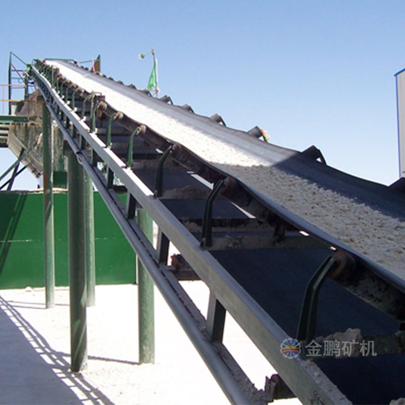 5、帶體薄能自重輕由于聚酯帆布強度大,約為棉帆的2.5-9倍,與棉帆布芯輸送帶比,可以減層,從而帶體薄,自重輕,成槽性好,既提高輸送又可減少傳動功率,并相對又可以減少帶輪直徑,達到節約目的。